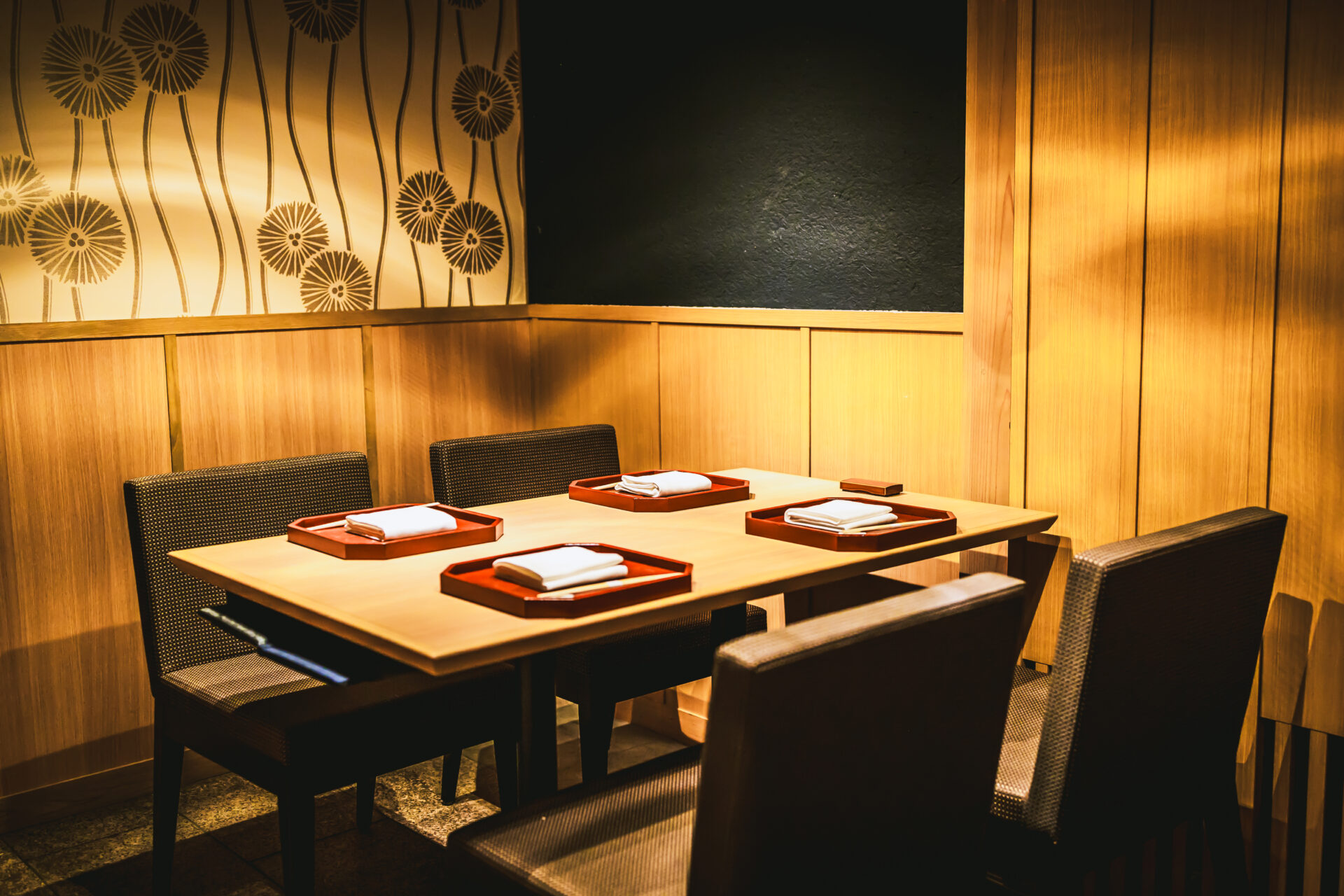 完全個室は8名様までのお部屋と、4名様までの半個室。接待やご会食、ご接待、記念日のお祝いなど特別な日のお食事を彩ります。