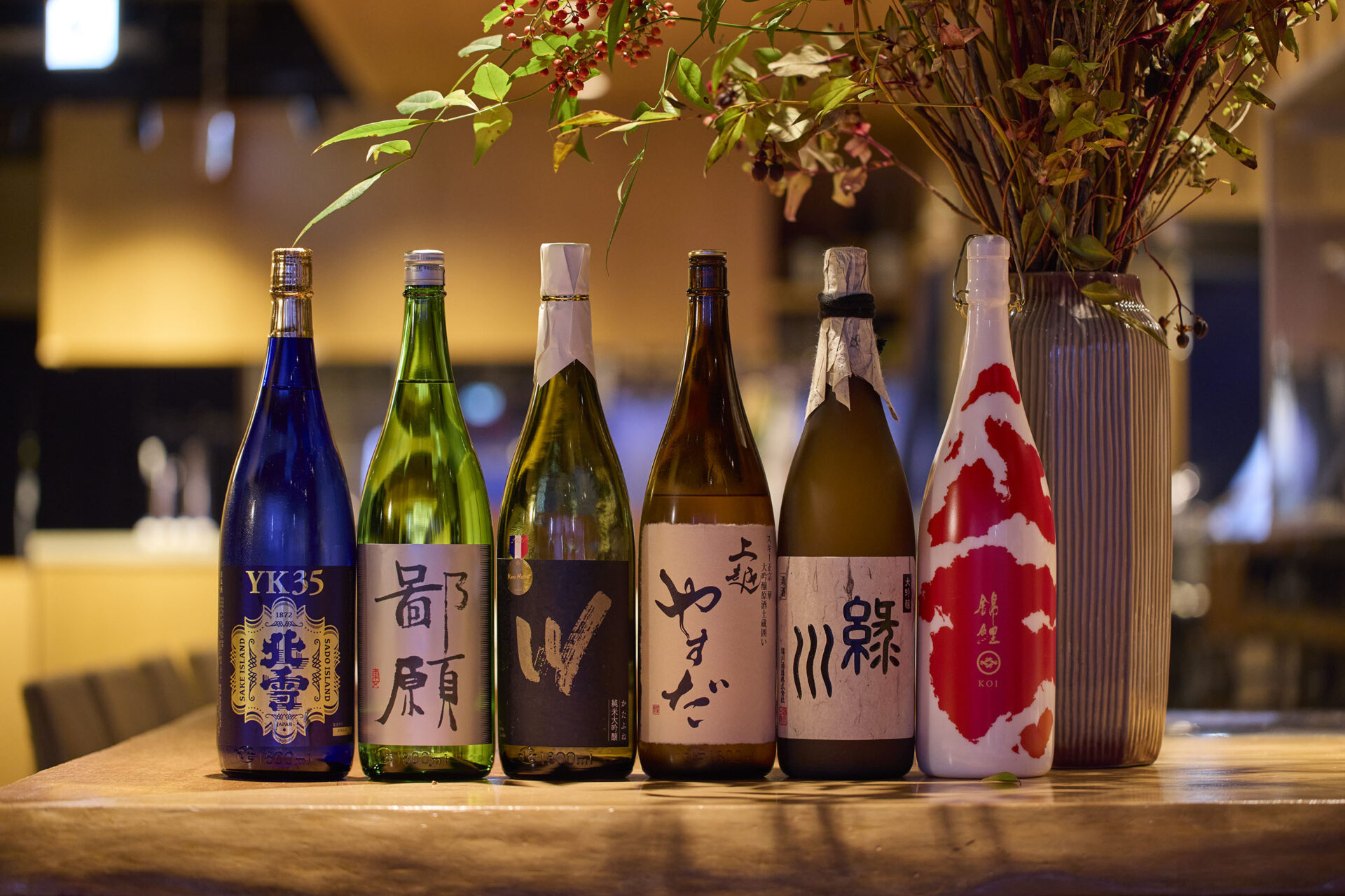 日本一の米どころ新潟県は酒造りの名産地でもあり、県内90蔵ある新潟地酒のみにこだわり、常時40種類以上をご用意しています。当店オリジナル日本酒や東京ではなかなかお目にかかれない新潟上越の酒蔵の銘酒もご提供致します。メニューにない季節ごとの限定酒などもご用意ございますので、お気軽にお声掛け下さい。 又、芋焼酎3M(森伊蔵・魔王・村尾)、 麦焼酎(百年の孤独)、山崎・白州・響・余市などのウイスキー、新潟の岩の原ワインなども各種取り揃えております。