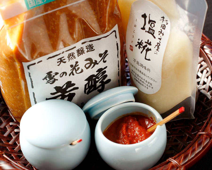 発酵調味料に適した新潟上越が生んだ薬味を自慢の料理に添えてご提供いたします。 刺身醤油、味噌、塩糀、ぴりっこ(とうがらし)など
