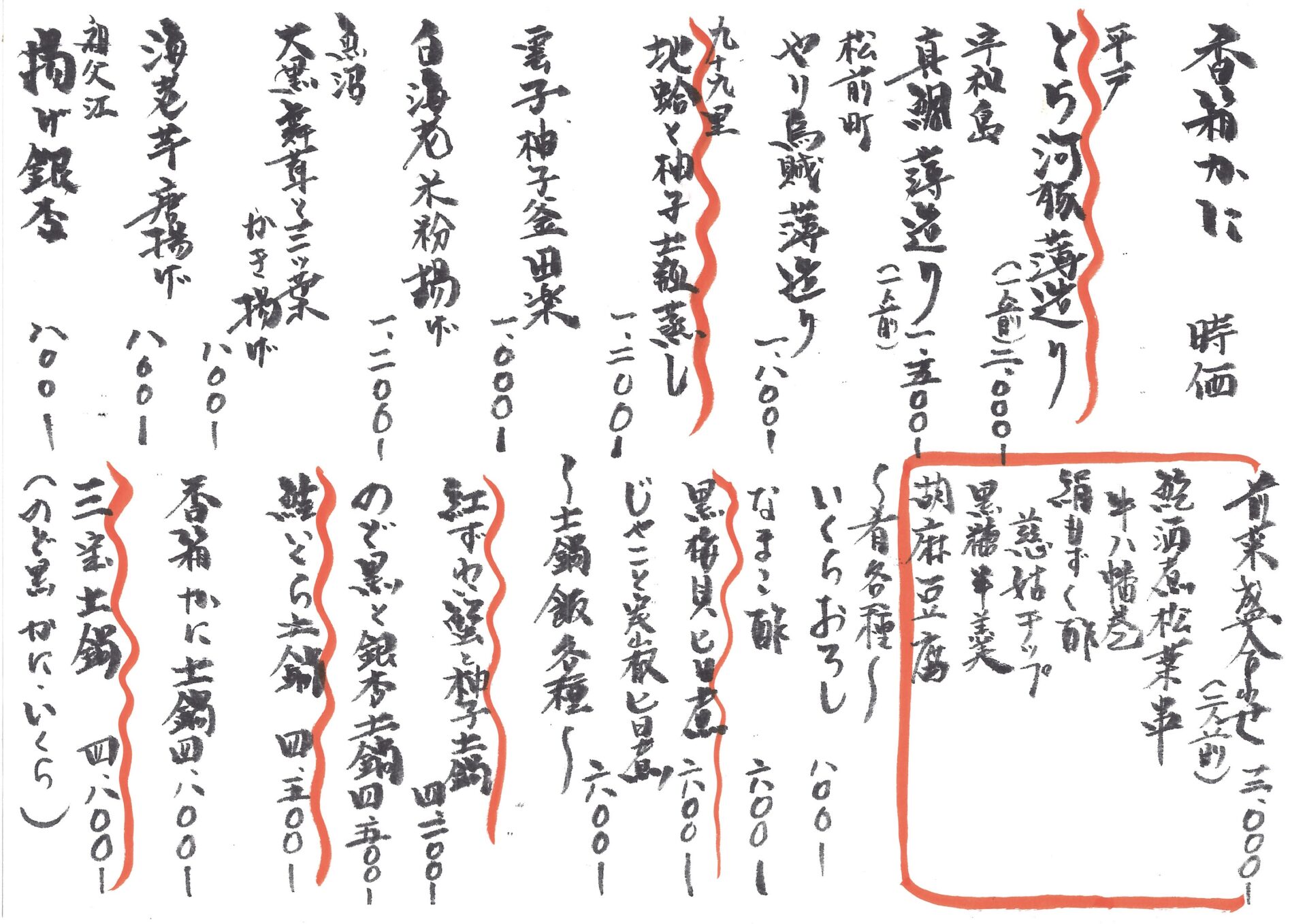 香箱ならではの濃厚な内子とプチプチとした外子、繊細かつ香り豊かな味わいを、冬の贅沢の代名詞である【 ふぐ 】と共にお楽しみいただける特別コースです。水揚げ期間はわずか2か月間のみ。今だけの味覚を心ゆくまでご堪能ください。