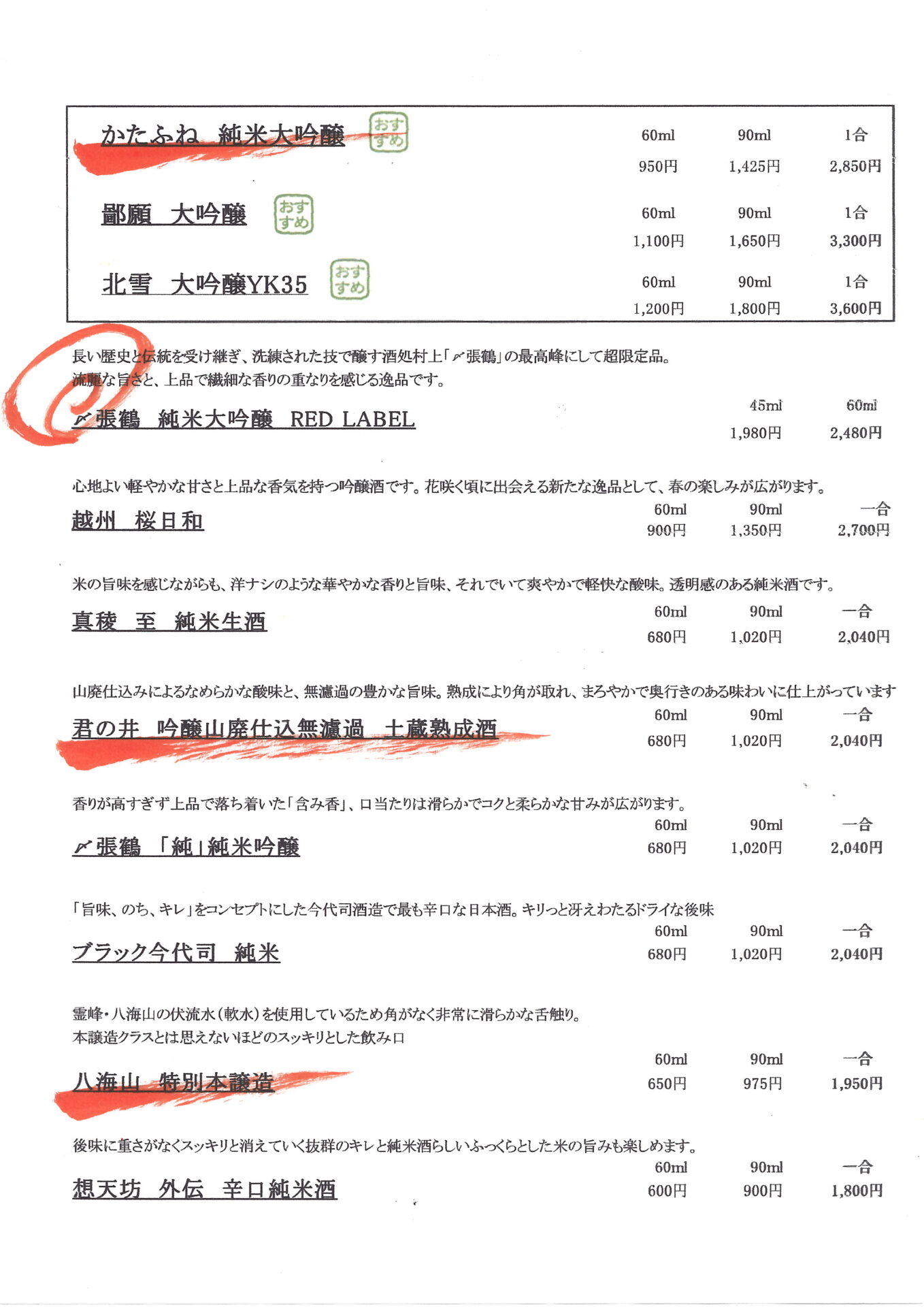 ※季節・仕入れ状況により変更も御座います。